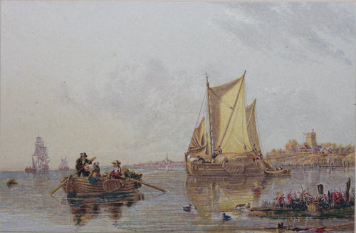 George Baxter. River Scene, Holland. Baxter print. C. 1847 - 1849.