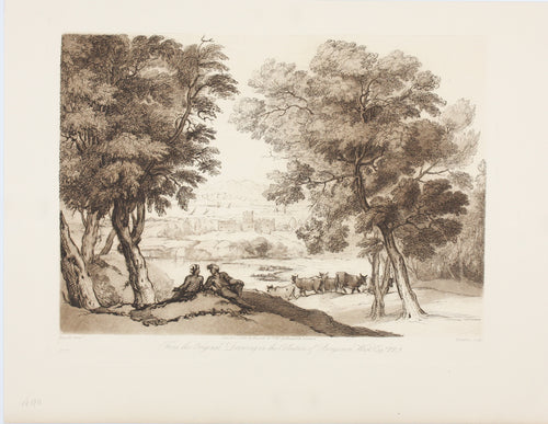 Claude Lorrain, after. A Landscape with Buildings and Cattle. Etching by Richard Earlom. 1775.